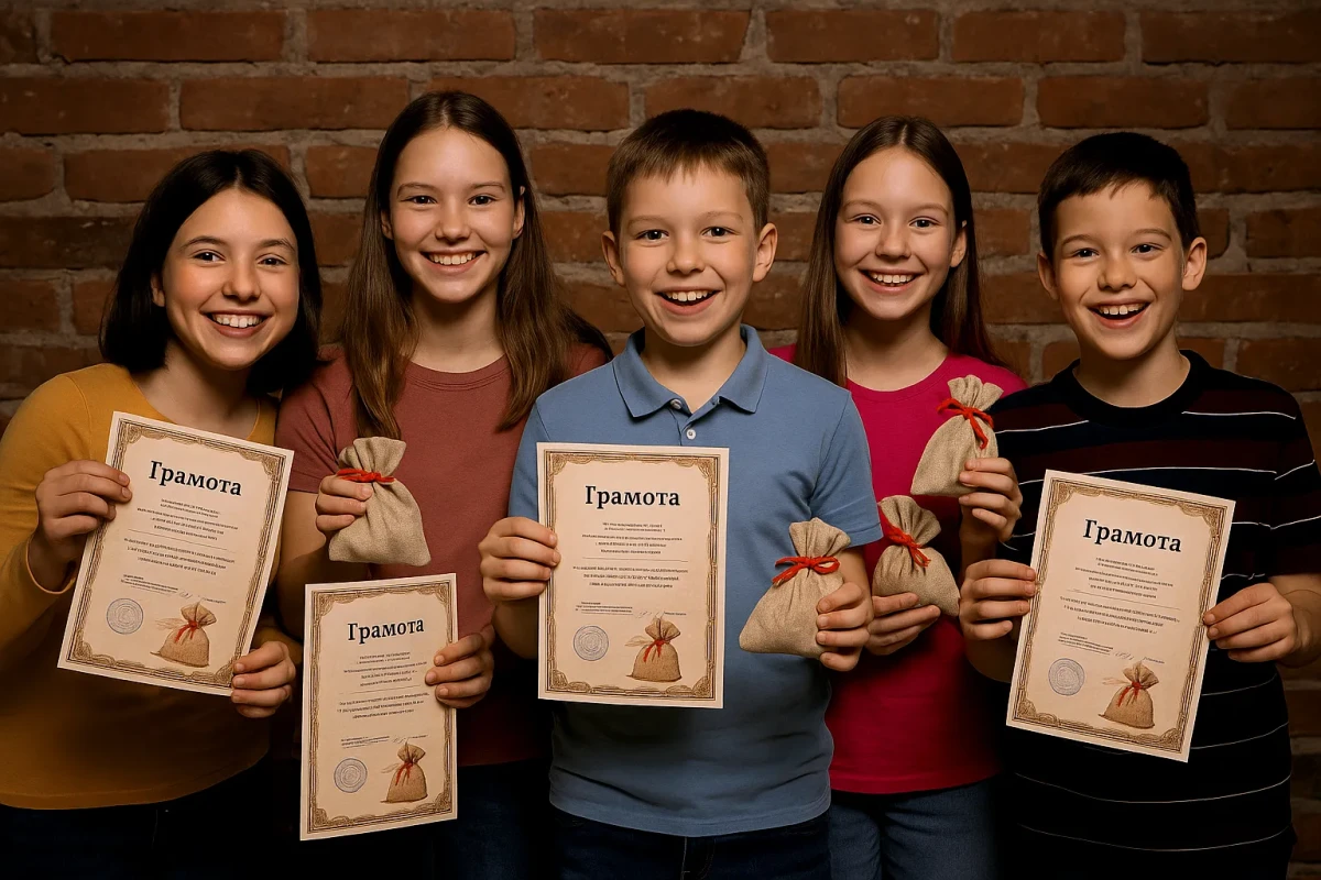 - Подарки: сладкие мешочки, амулеты, дипломы