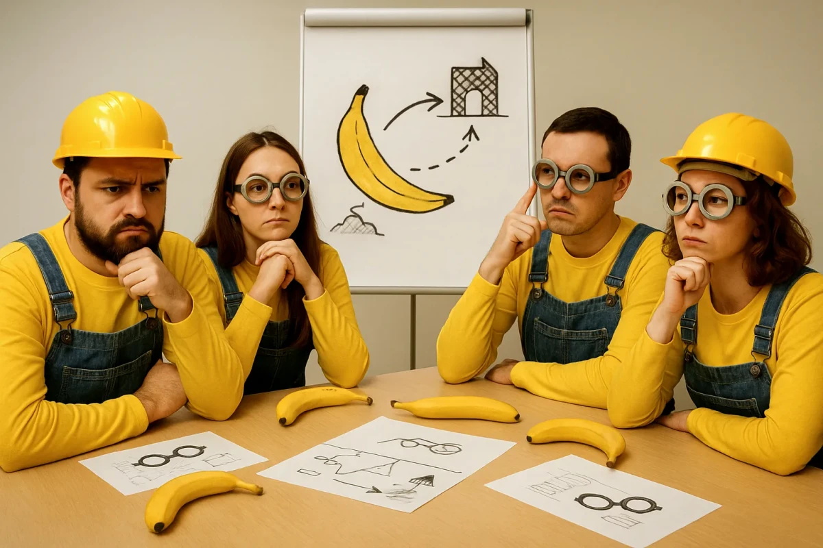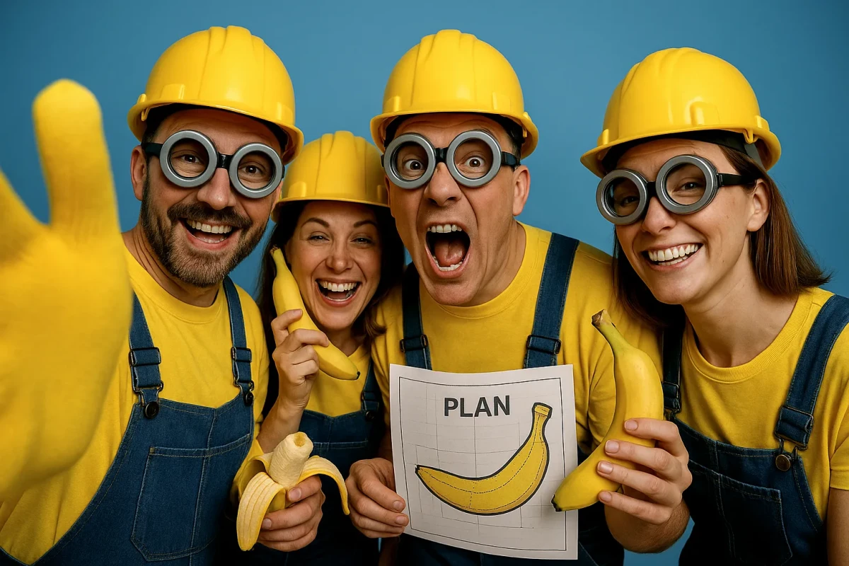 Вы приходите на праздник, корпоратив или встречу с друзьями — а вас встречают жёлтые сумасшедшие создания с бананами, громкой музыкой и странными выражениями лиц. Они не просят паспорт. Они вручают секретную миссию — спасти мир от скуки, рутины и офисной тоски.