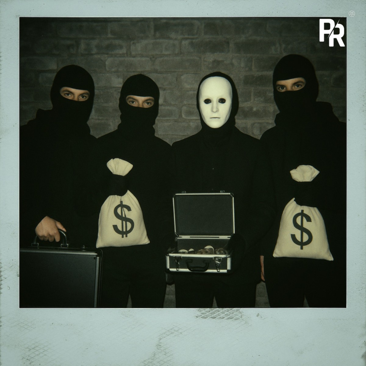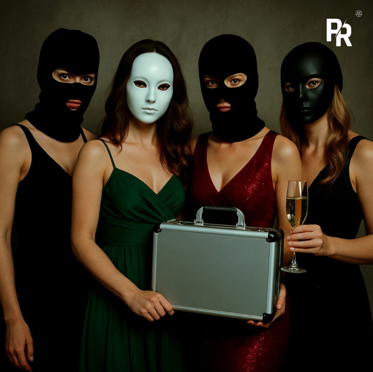 - Стильный реквизит: сейф, план ограбления, фальш-деньги, досье, маски