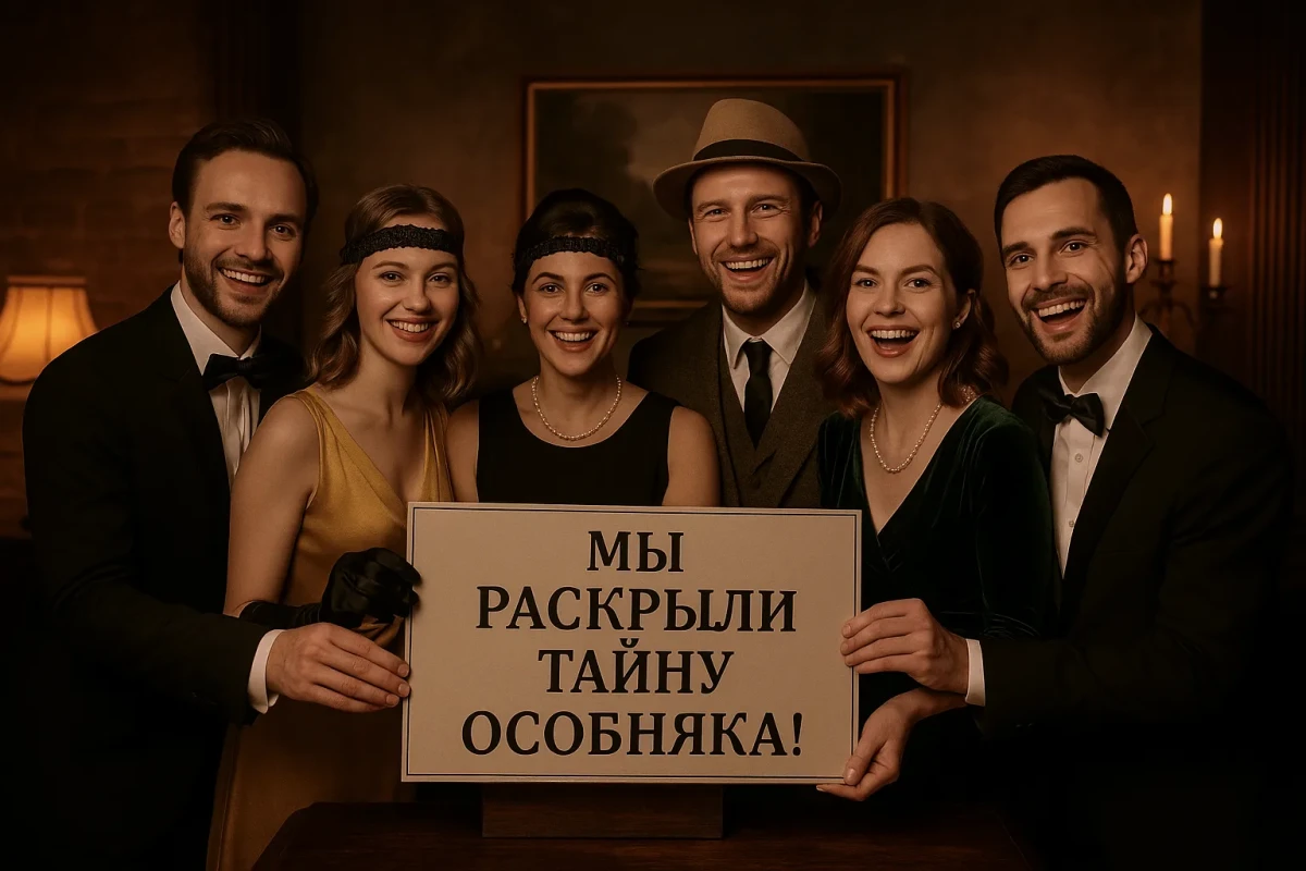 Это не обычная головоломка и не театр. Это иммерсивный выездной квест в жанре ретро-детектива, где каждый участник — полноценный персонаж с биографией, целями, уликами и решениями.